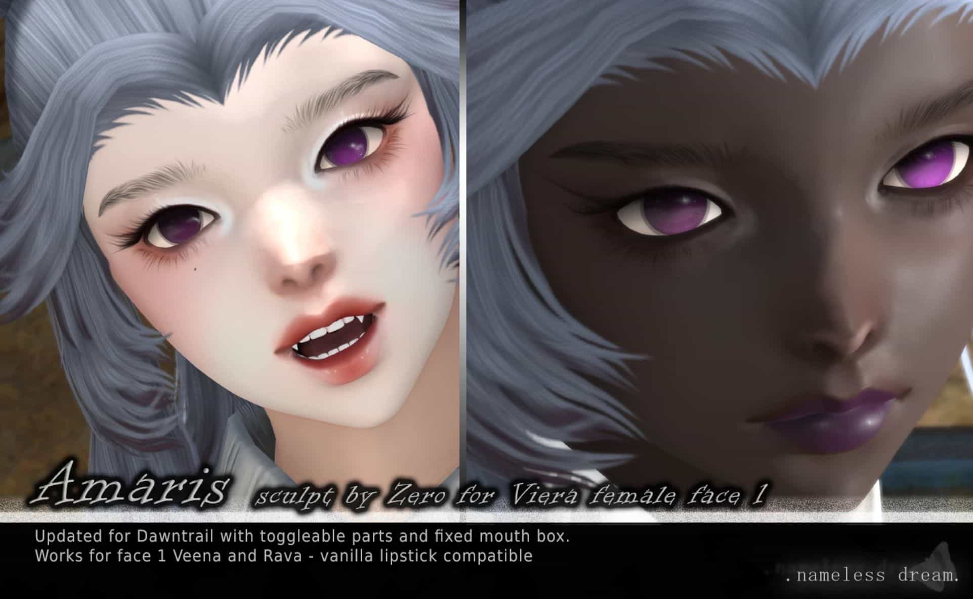A port of Zero’s Amaris sculpt with updated teeth, Dawntrail face UVs and rigging.